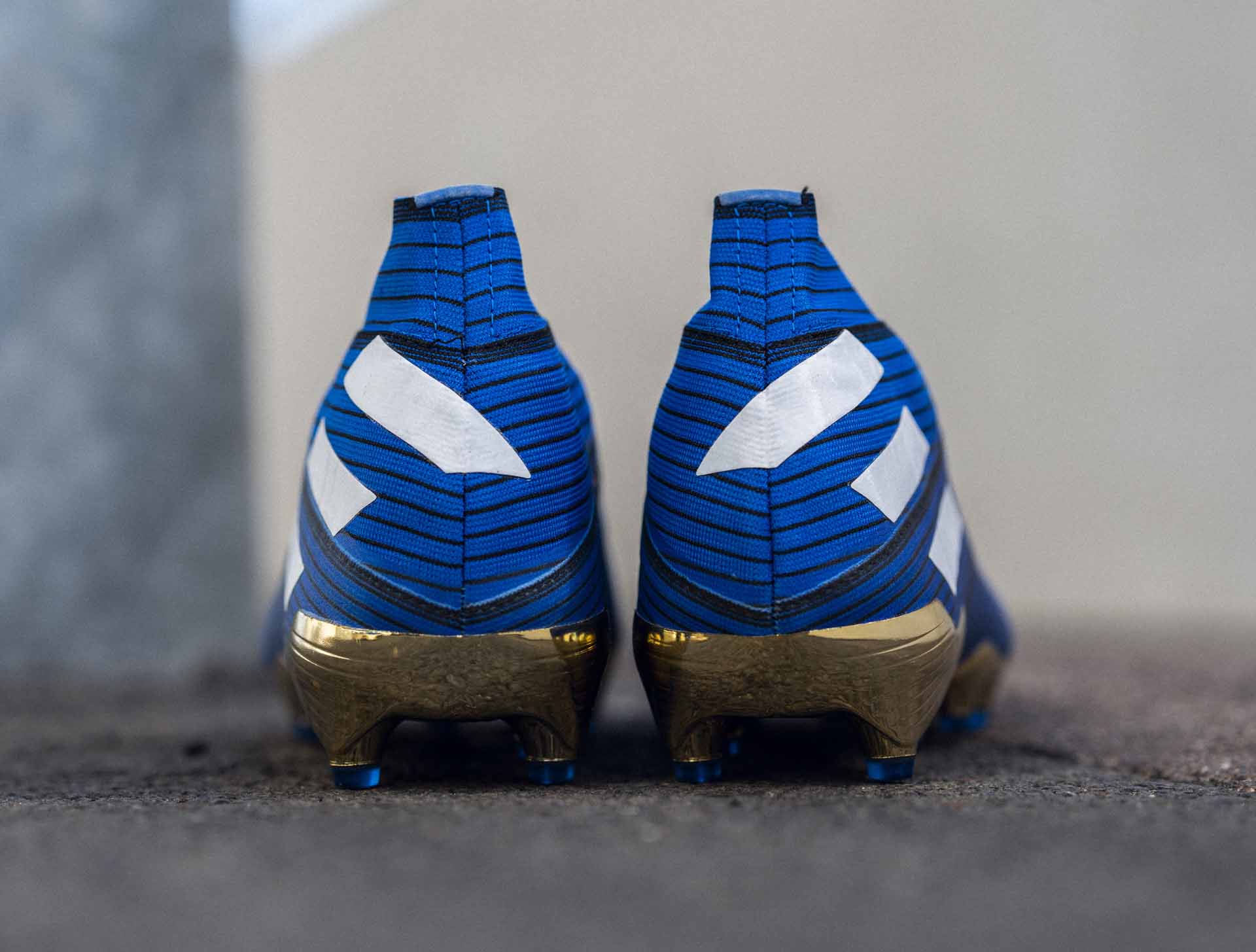 De nieuwe adidas Nemeziz 19+ en 19.1 voetbalschoenen uit het INPUT code pack hebben dus een klassiek design en bevat evenals alle andere schoenen uit dit pack van adidas gouden accenten. De zoolplaat van de voetbalschoenen is namelijk goud. De noppen ana de onderkant van de schoenen zijn weer blauw. De upper van de nieuwe Nemeziz schoenen heeft een heldere kleur blauw met witte details. De drie strepen van adidas zijn namelijk wit en de Agility bandage van de upper bevat ook zwarte strepen. Aan de technologieën en de materialen van de Nemeziz heeft adi niks veranderd. Ben je hier nog niet bekend mee? Lees hieronder uitgebreid over het bandage systeem van de voetbalschoenen en alle andere technologieën die adi in de schoenen verwerkt heeft.