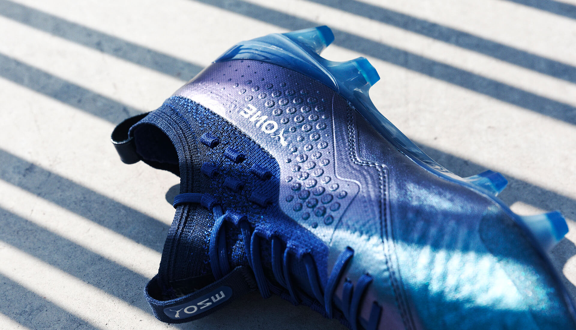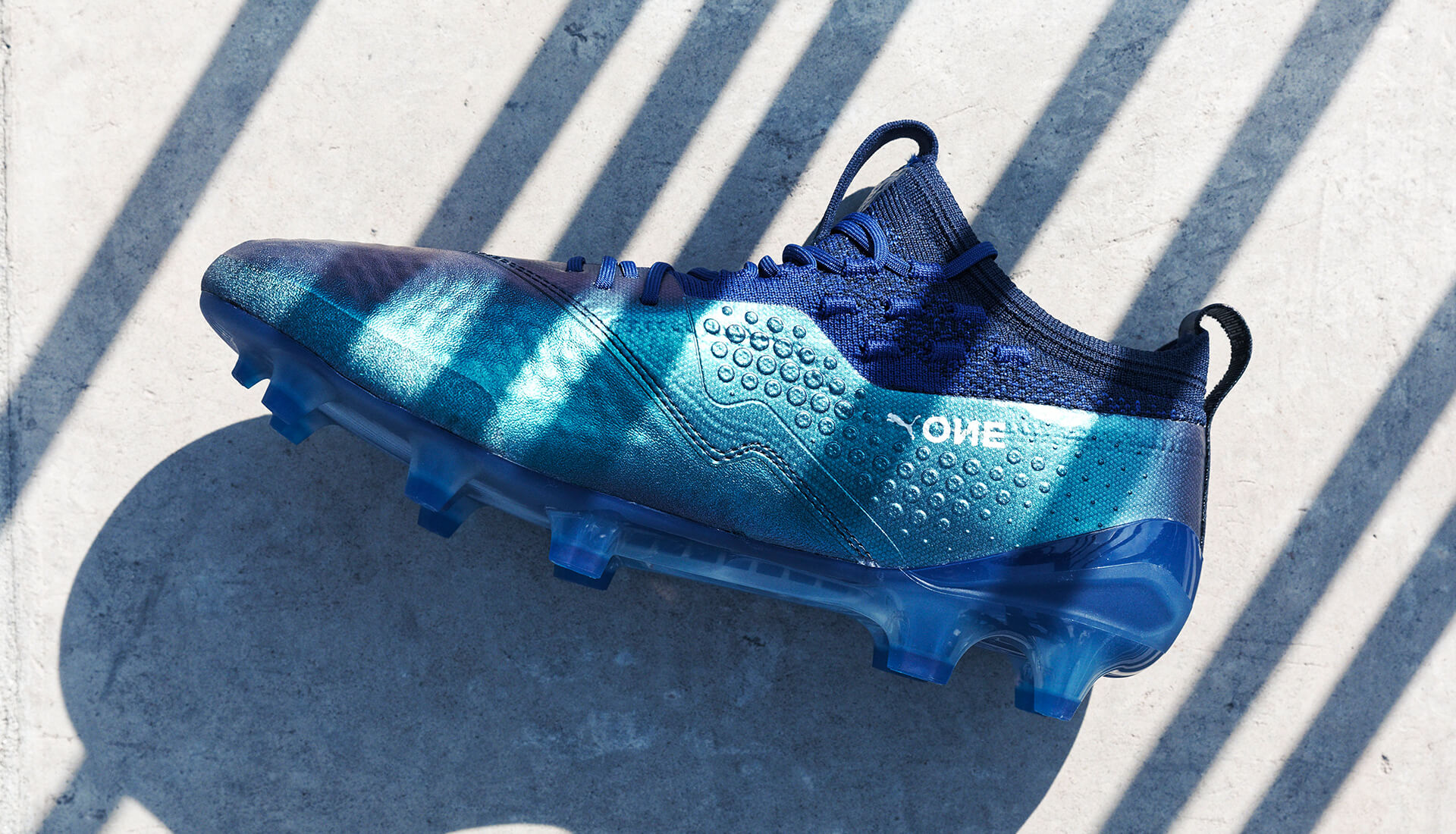 De derde generatie PUMA ONE 1 voetbalschoenen focust zich op ieder aspect van de wedstrijd, van aanvallen tot snelheid tot het perfecte balgevoel! FIT, FAST, FEEL is het credo Hoe dit tot uiting komt, hebben we het straks over. Het design van de nieuwe Puma ONE voetbalschoenen is ook echt STUNNING! De nieuwe Puma ONE voetbalschoenen zijn een combinatie van blauw, zilver en peacoat. De upper van de nieuwe Puma voetbalschoenen heeft een turquoise tint blauw, welke middels een speciale gloed overloopt in het donkerblauw. Dit effect spreidt zich naar de zijkanten, de onderkant en het bovenste gedeelte van de nieuwste Puma One voetbalschoenen. Verder bevatten de zijkanten van de nieuwste Puma One voetbalschoenen een zilveren trademark teken van het merk met een blauwe omlijning. Daarnaast worden de schoenen gekenmerkt door de donker blauwe enkelsok en het licht blauwe onderstel van de schoenen! Wil je weten waarom juist aanvallers als Lukaku, Auguero en Giroud kunnen excelleren op deze voetbalschoenen? Lees hieronder alles over het materiaal en de technologie die deze schoenen bevatten.