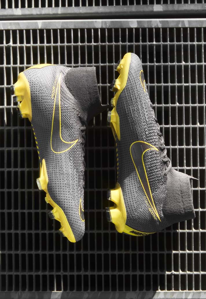 De nieuwste Nike Mercurial Superfly en Vapor voetbalschoenen zien er weer lekker snel uit en dat niet alleen. Ook de materialen en technologieën die in deze schoenen verwerkt zijn, zorgen er weer voor dat deze schoenen ideaal zijn voor de snelle en creatieve voetballers. Het is dan ook niet gek dat veel van de beste voetballers ter wereld op deze schoenen spelen. Genoeg complimenten over deze voetbalschoenen. Check nu alle kenmerken van de schoen. De grijze upper van de Mercurial schoenen is gemaakt van een Flyknit constructie. Deze constructie bestaat uit één onderdeel. Het voordeel van deze constructie is dat deze naadloos om de voet sluit. Het bovenwerk past zich perfect aan naar de vorm van de voet, waardoor het eerste balcontact direct perfect is en je het gevoel hebt dat je slechts een sok aanhebt. Het Flyknit materiaal plakt als het ware aan de voet, waardoor er geen openingen meer zijn tussen de voet en de zoolplaat. Het volgt de natuurlijke bewegingen van de voet!