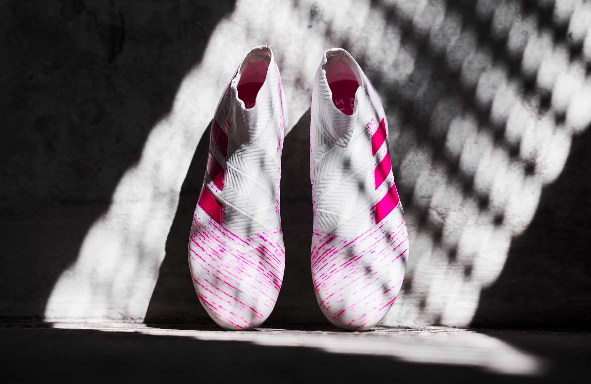 Check hieronder nog meer afbeeldingen van de wit/roze adidas Nemeziz voetbalschoenen uit het Virtuso pack pack. Dit nieuwe pack bevat ook de volgende voetbalschoenen: