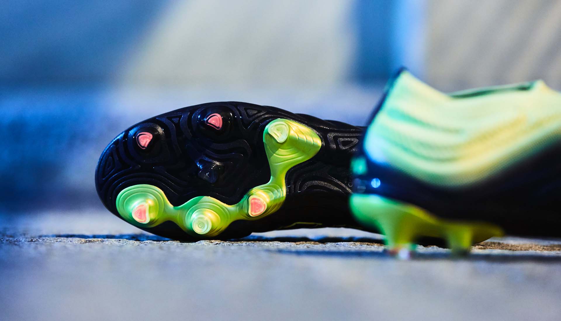 De nieuwe adidas COPA 19+ voetbalschoenen uit het Exhibit pack zijn dus geheel zwart en daar is door adidas een fel geel tintje aan toegevoegd. In principe hebben de schoenen dus hetzelfde design als de zwarte adidas COPA 19 voetbalschoenen. Rondom de instap van de nieuwe adidas COPA voetbalschoenen is de upper fel geel en ook de omranding van de drie adidas strepen op de zijkanten van de voetbalschoenen is fel geel. Hetzelfde geldt voor het adi logo aan de achterkant van de kicksen en het COPA trademark teken. Verder bevatten de noppen van deze zieke voetbalschoenen ook fel gele accenten. Toen de nieuwe generatie COPA 19 voetbalschoenen door adidas werd gelanceerd, was er nog wat twijfeld over de voetbalschoenen. Deze twijfel lijkt met deze kleurstelling helemaal weggenomen te zijn. De nieuwe schoen is ook nog uitgerust met de nieuwste technologieën. Die bespreken we hieronder!