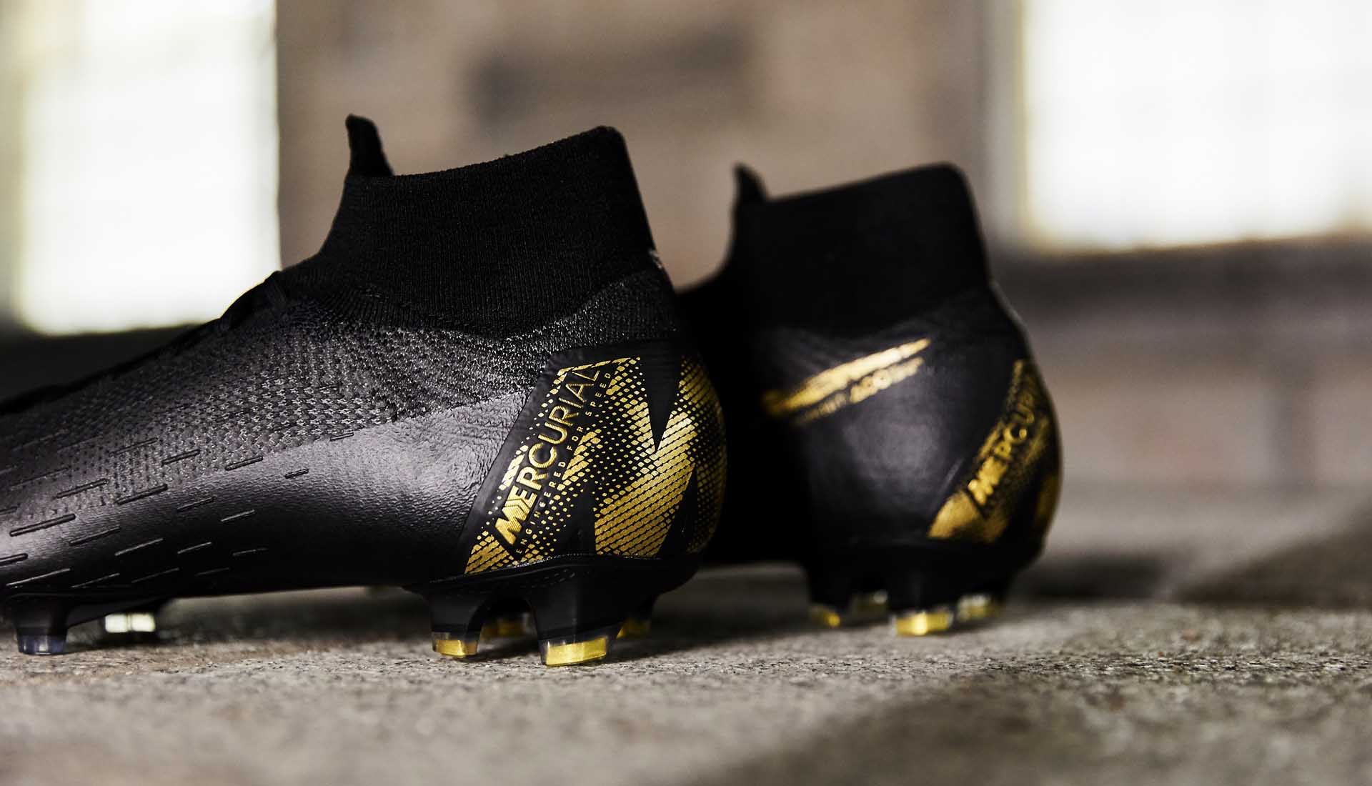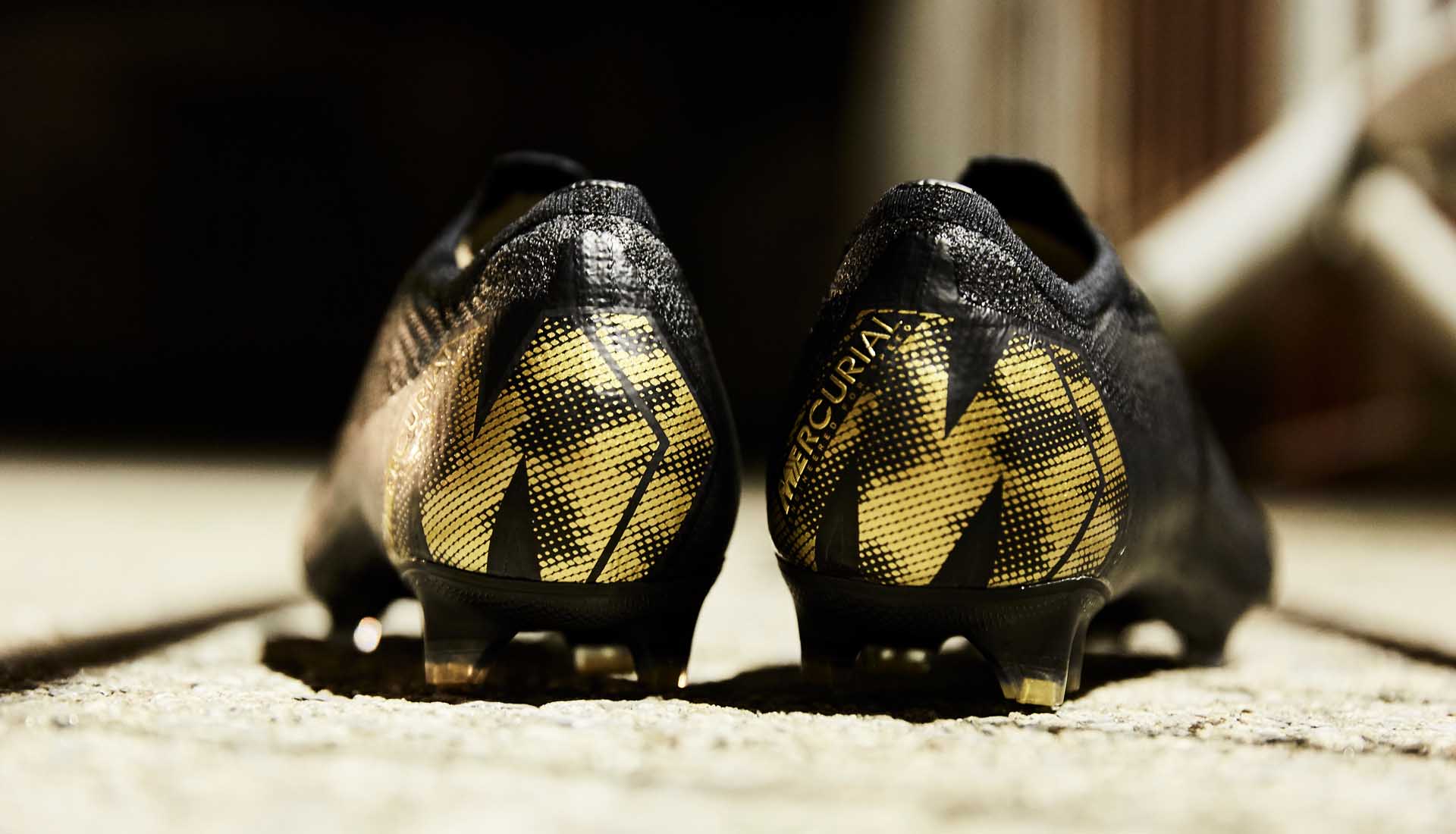 De zwart/gouden Nike Mercurial Superfly en Vapor voetbalschoenen