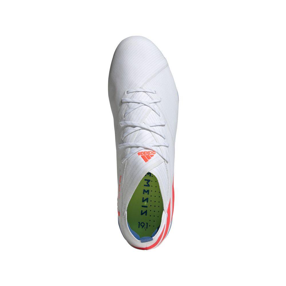 De 19.1 versie van de Nemeziz schoenen zijn uitgerust met veters en de veters van de schoenen van Messi zijn wit. De schoenen zijn verder uitgerust met een V-vormige enkelsok of kraag. Hierdoor kun je nog makkelijker je schoenen aan en uit doen. De binnenkant van de schoen bevat nog een extra sok en dit zorgt voor een nog betere lockdown. Deze kraag is uitgerust met kleine rubberen pads, die ervoor zorgen dat je niet gaat schuiven in je schoenen. De nieuwe upper in combinatie met de Adaptive instep zorgt ervoor dat ervoor dat de schoenen zich perfect aanpassen aan de voeten en je de perfecte fit hebt. Ook de zoolplaat van de schoenen is anders. De zoolplaat is gespleten. Deze technologie wordt door adidas ook wel split tooling genoemd. Het idee hierachter is dat je hierdoor nog beter ondersteunt op de plekken waar dat nodig is en je het nog meer bewegingsvrijheid geeft. De schoenen bevatten zowel ovale noppen als ronde noppen. Met deze noppen kun je snel van richting veranderen en je van je tegenstander losmaken. Bovendien garanderen de noppen een maximale stabiliteit. De Nemeziz voetbalschoenen zijn daarmee bij uitstek de ideale schoenen voor creatieve en snelle voetballers.