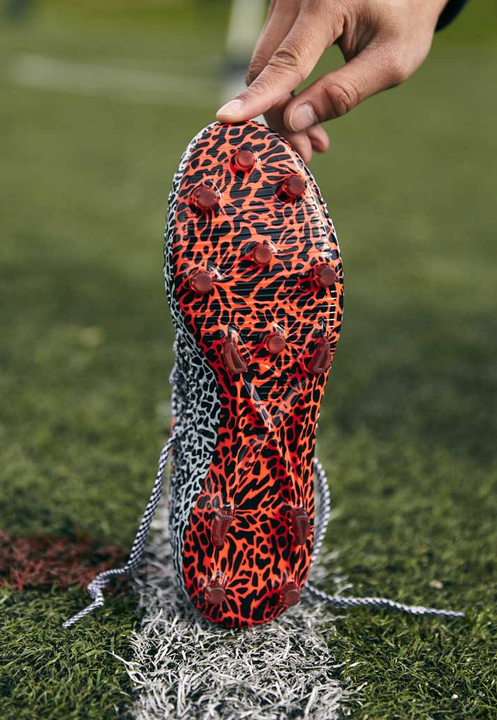 De nieuwe Puma Future 18.1 Netfit Texture heeft weer een geweldig opvallend design. De voetbalschoen heeft een zwart wit safari geïnspireerd patroon met enkele opvallende rode accenten. Het ontwerp doet ons denken aan de Nike Mercurial Superfly CR7 safari schoenen, die zijn uitgebracht in 2010. De basis van de schoen is zwart wit. Verder heb je de bekende enkelsok. Deze enkelsok is rood. Op de hiel van de schoen is de bekende Poema, uit het logo van het Italiaanse merk, te zien. Ook deze Poema is rood. Verder zijn er op de zijkant van de schoen ook rode accenten te vinden. De zool en de noppen van de schoen hebben beide een rood/zwarte kleurencombinatie. Op de achter lip van de schoen staat FUTURE geschreven. Het design van de schoen ziet er volgens ons geweldig uit. Natuurlijk heeft Puma ook weer baanbrekende technologieën gebruikt bij het ontwerpen van deze schoen. Door deze technologieën val je niet alleen op door het geweldige design van de Puma Future 18.1 Netfit Texture. Ook je prestaties op het veld vallen op. Jij bent de speler die de wedstrijd beslist. Jij pakt je kansen en jouw ‘FUTURE’ wordt bepaald door deze schoen. Ben jij nieuwsgierig naar de details van deze voetbalschoen? Check ze hieronder!