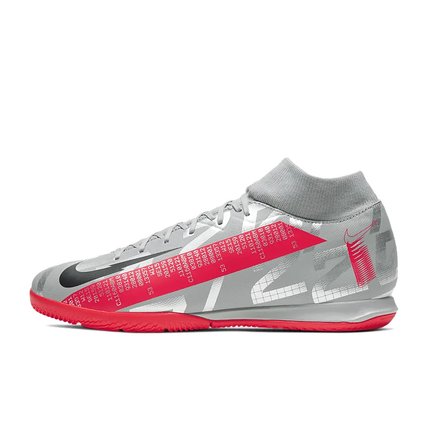 - De binnenkant van de Nike Mercurial Superfly bevat een lichtgewicht, geperforeerde 3D-inlegzool. Deze is verbonden met een speciale chassis, welke ervoor moet zorgen dat je nog sneller kunt reageren. Iedere maat heeft een andere chassis. Dit betreft de zogenaamde NikeGRIP technologie. Deze is uitgerust met een speciale 3D structuur die perfect aansluit op de inlegzool in de schoen. Hierdoor ga je niet met je voeten in de schoenen schuiven en het zorgt ook nog eens voor een perfecte demping van schokken.